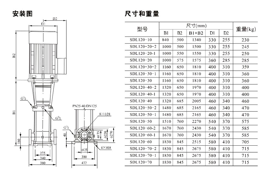 SDL120/SDLT120為配用標(biāo)準(zhǔn)電機的非自吸立式多級離心泵,電機軸和泵軸用聯(lián)軸器直接聯(lián)接,把拉桿用螺母將外筒,過流部件固定在支架和進出水體之間,泵進出水口在泵底部的同一直線上。泵可根據(jù)需要配置智能保護器,對泵的干轉(zhuǎn)、缺相、過載等進行有效的保護。