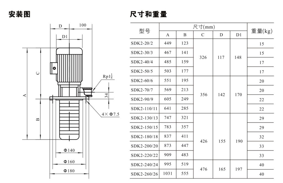 SDK2/SDKT2為配用標(biāo)準(zhǔn)電機(jī)的非自吸立式多級(jí)離心泵,電機(jī)軸和泵軸用聯(lián)軸器直接聯(lián)接的結(jié)構(gòu)。為滿足水槽或容器的安裝深度,可安裝空套的腔體來(lái)改變泵本身的侵入深度。