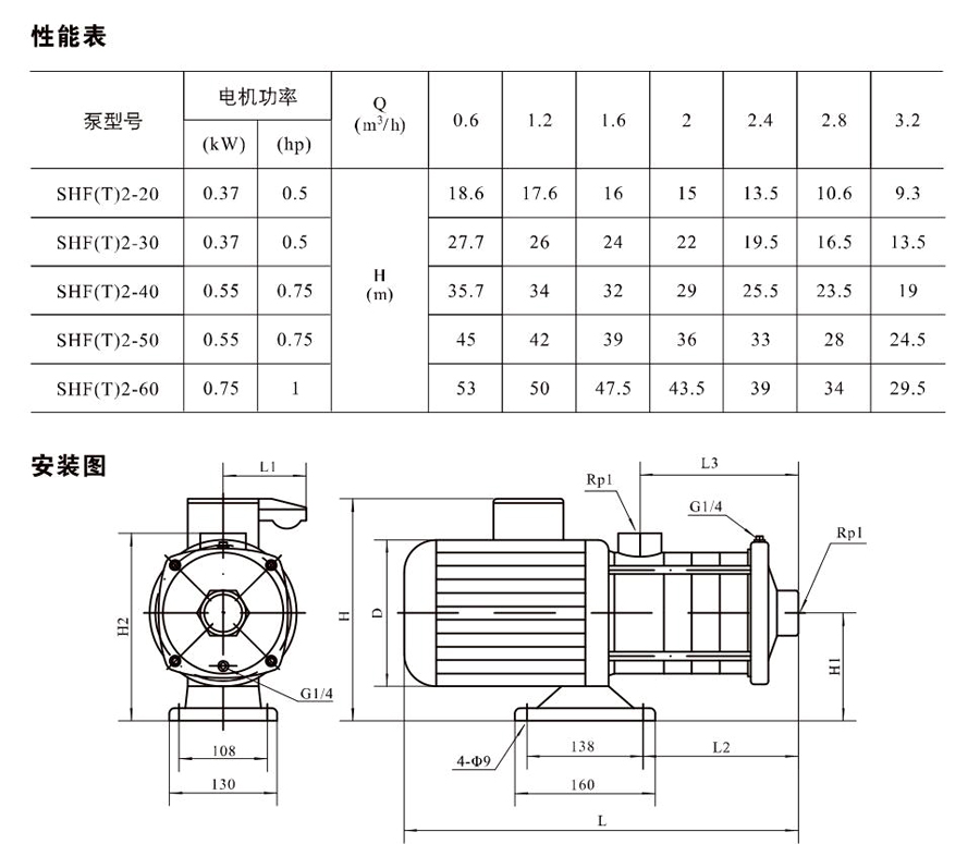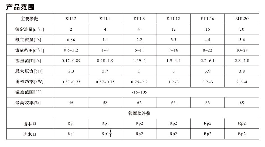 SHL/SHF/SHFT2為臥式多級非自吸多級離心泵,配加長軸電機。緊湊式結構使泵尺寸很小,軸向入口或徑向出口。