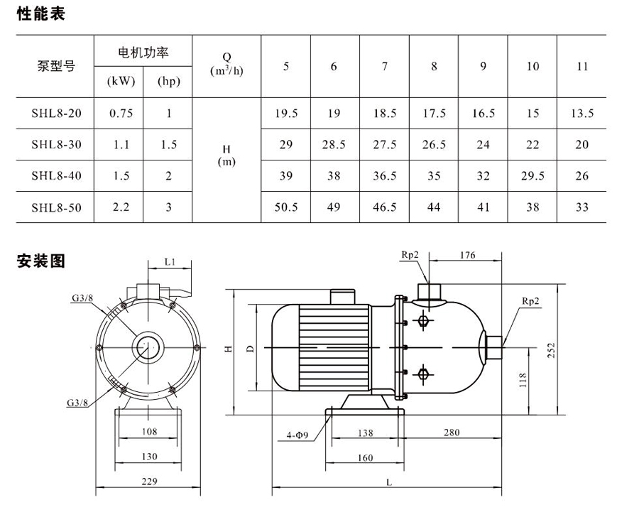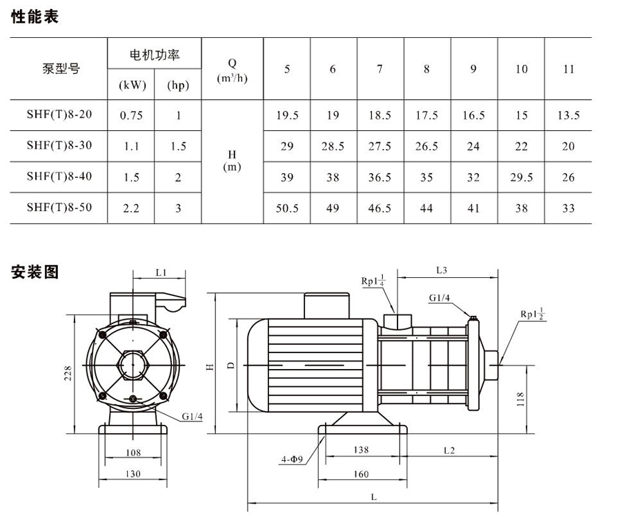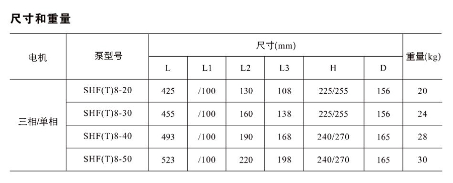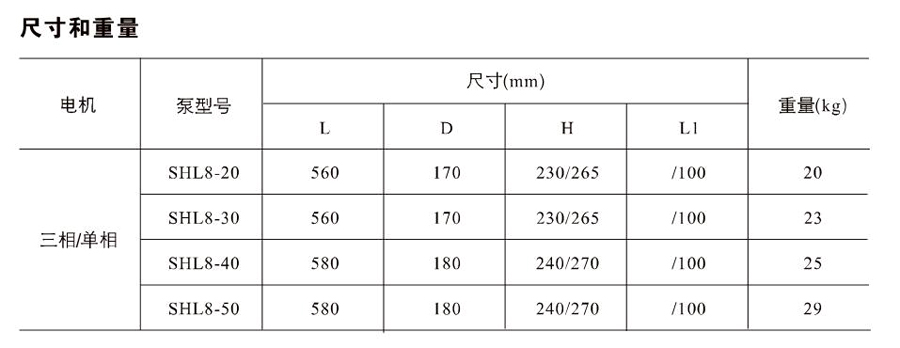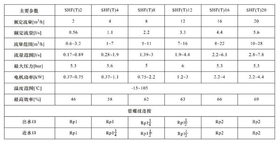 SHL/SHF/SHFT8為臥式多級(jí)非自吸多級(jí)離心泵,配加長(zhǎng)軸電機(jī)。緊湊式結(jié)構(gòu)使泵尺寸很小,軸向入口或徑向出口。